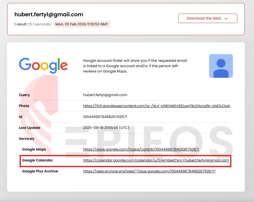 - Recherche via Epieos