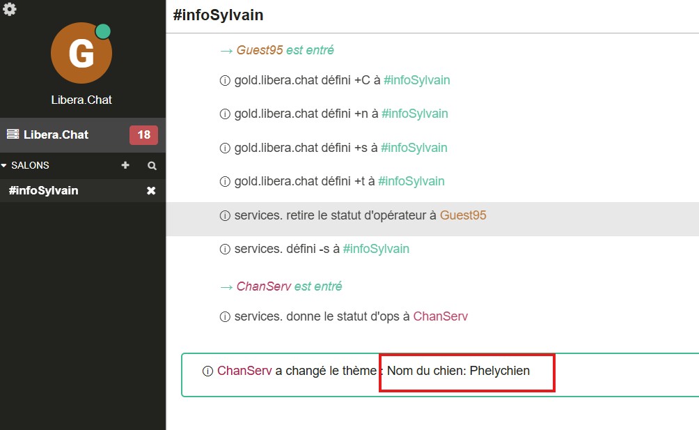 - Indice : communiqué sur Libera, channel