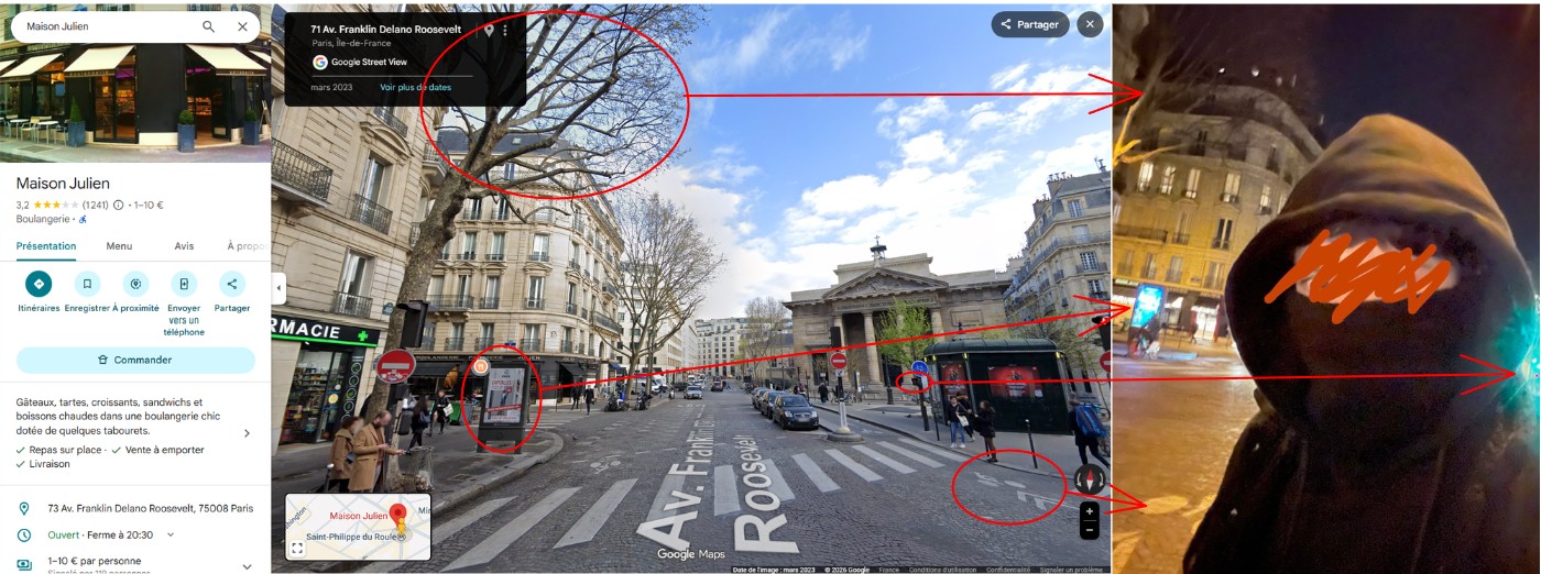 Description : Une photographie a été prise à Paris le 3 décembre 2023, vers 18h00. Votre mission consiste à identifier la station de métro la plus proche du lieu où l’homme masqué a été photographié. Ce défi repose sur l’application des techniques de GEOINT et d’OSINT pour analyser la structure urbaine, les conditions d’éclairage, les indices >environnementaux et l’agencement du réseau de transports parisiens.