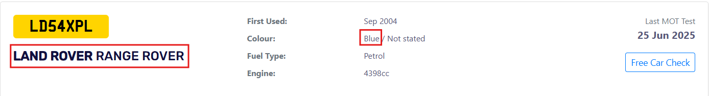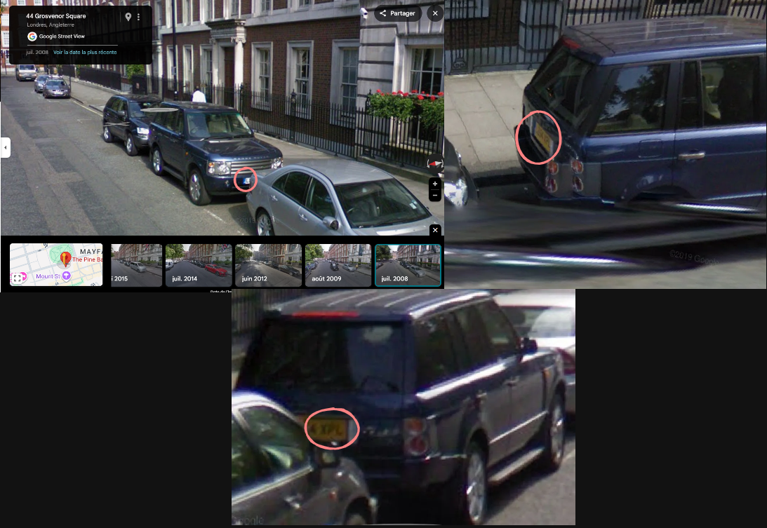 - La plaque d’immatriculation d’un véhicule bleu foncé observé près de l’entrée peu après l’opération