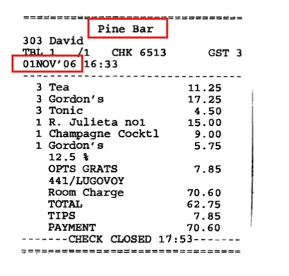 Nous avons même le ticket de caisse de ça commande au bar le jour même.