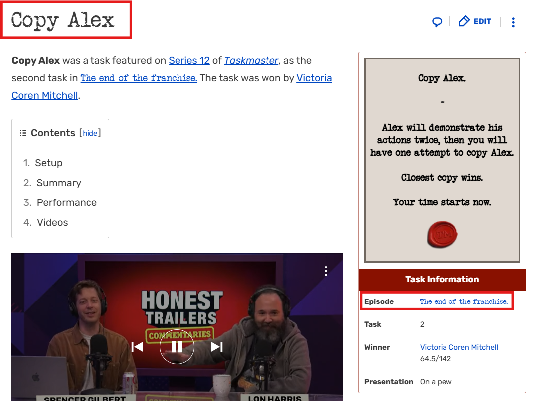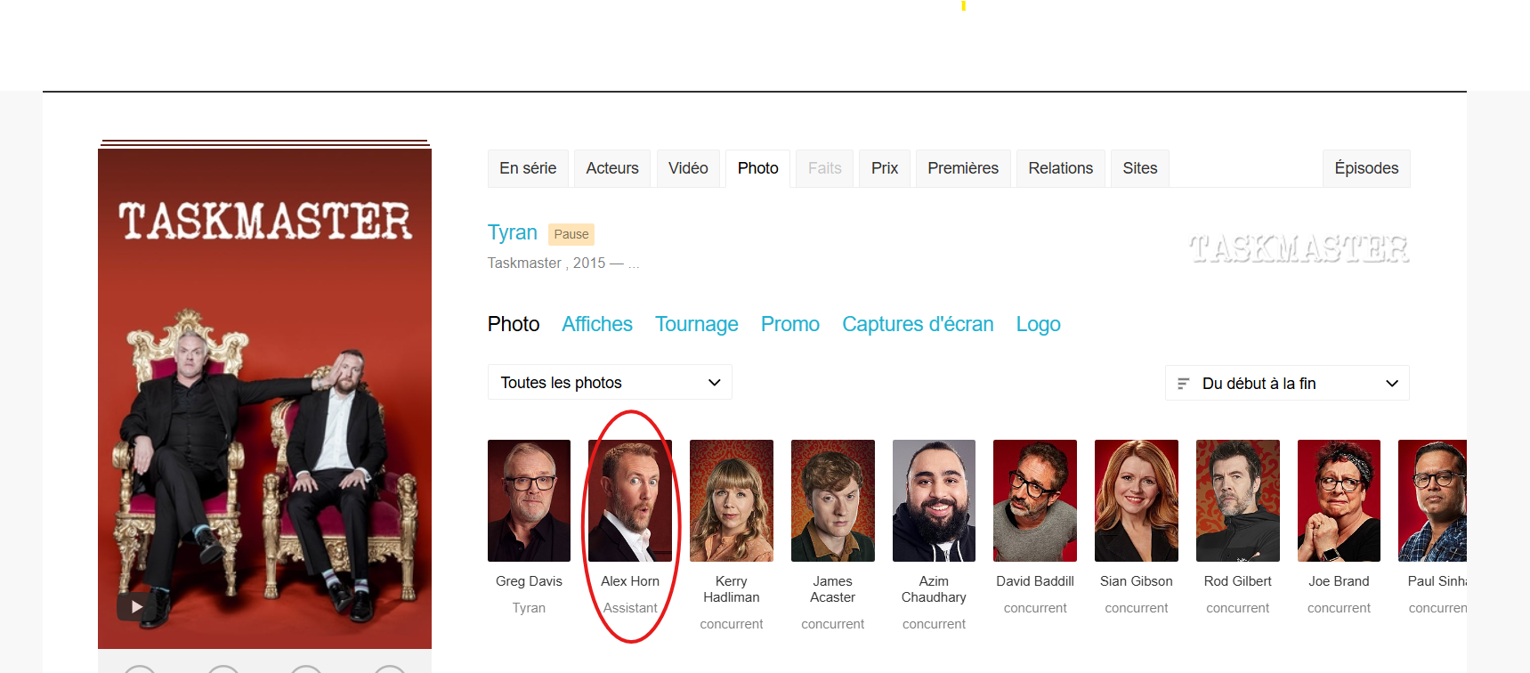 On fait un dork "Taskmaster" et "Copy Alex". On trouve un wiki fan dédié à l’émission.