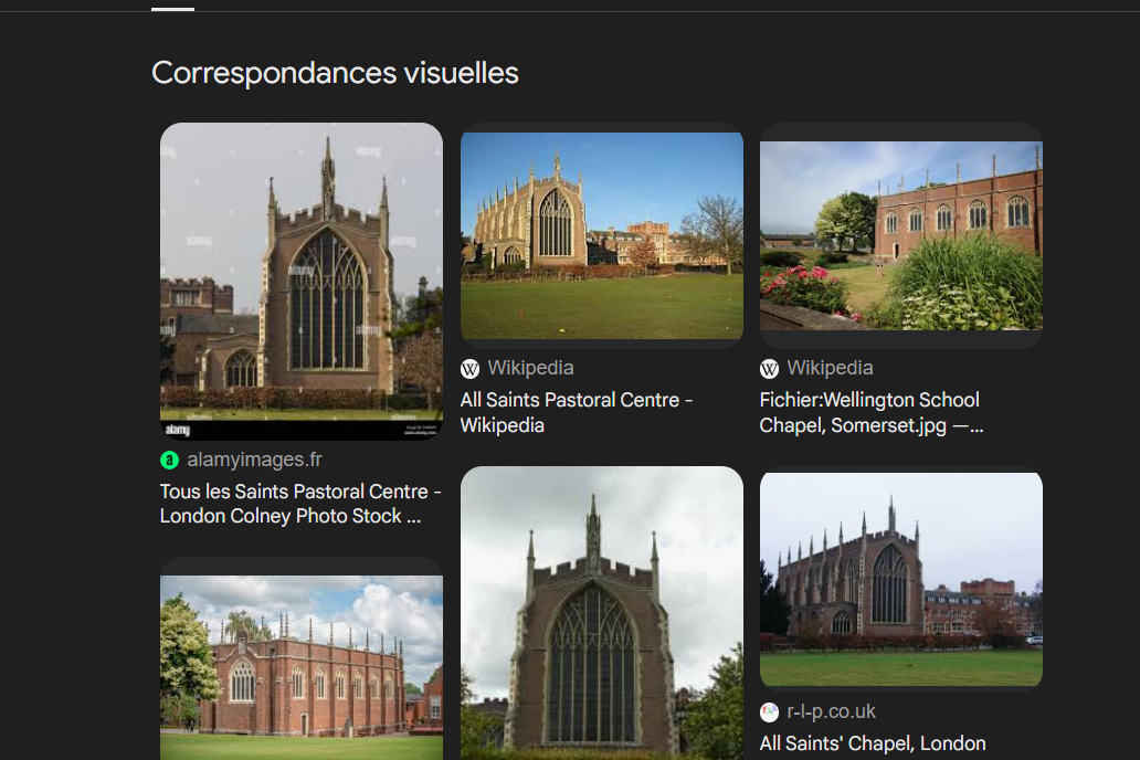 Captures d’écran, puis recherche inversée de l’église :