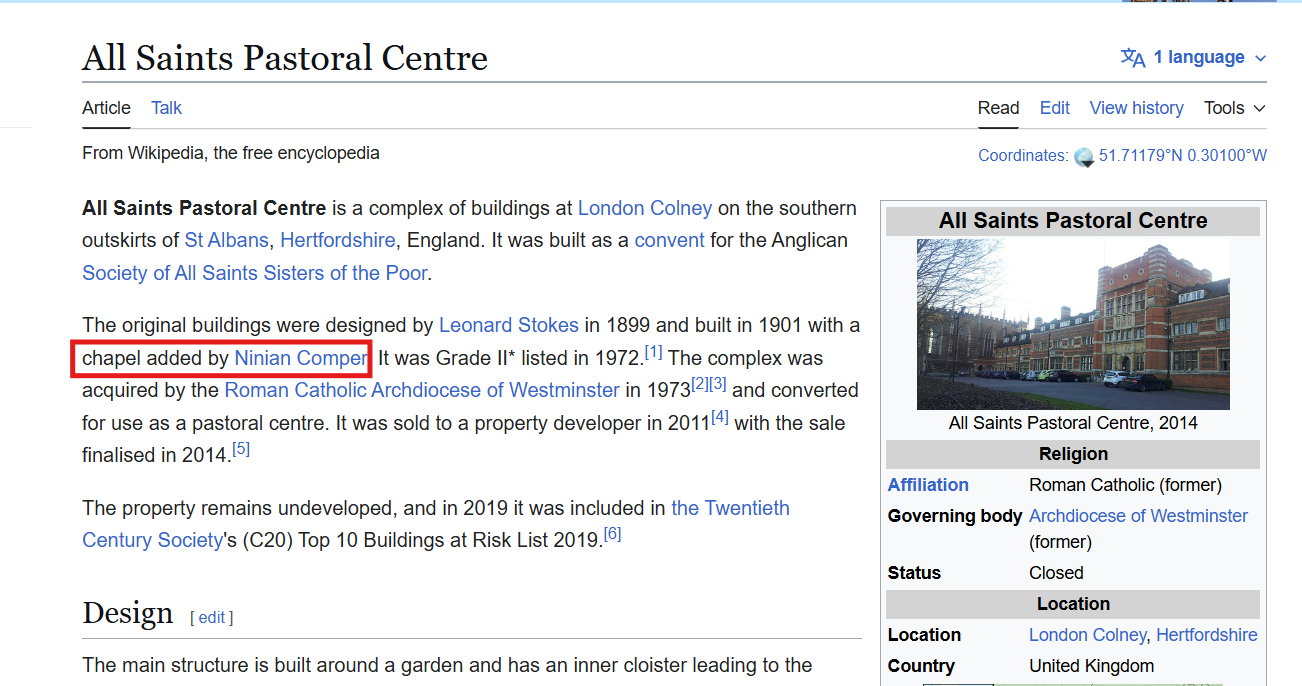 L’architecte est Ninian Comper ; on ne garde que le nom de famille : comper.