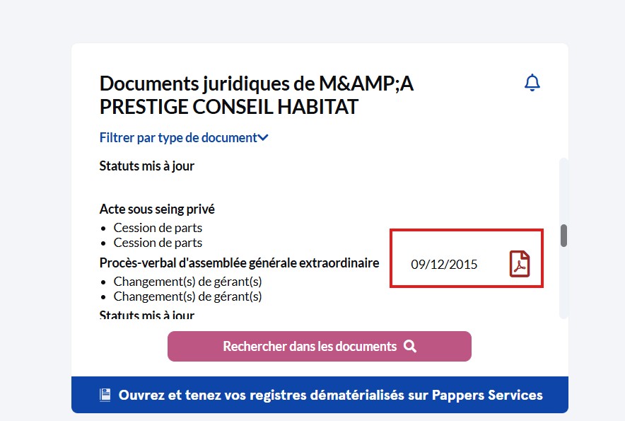 - La fiche Pappers de la société contient des documents juridiques datés du 09/12/2015.