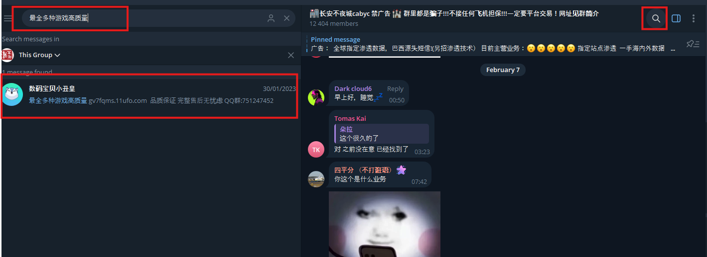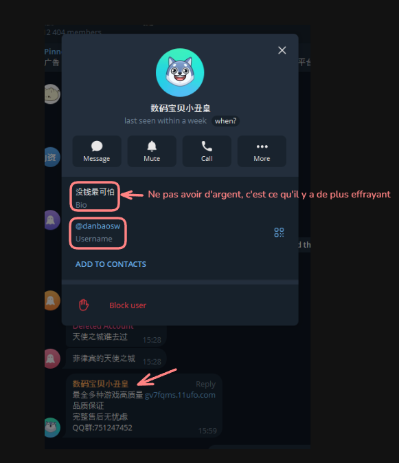 - On clique sur le profil Telegram qu’on a trouvé: 数码宝贝小丑皇