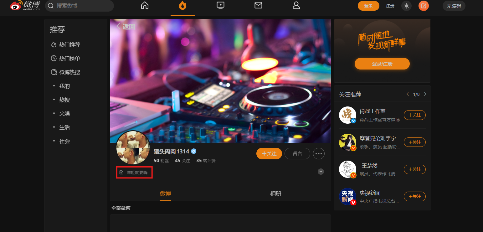 Toujours sur le Weibo, on regarde le slogan : 年轻就要嗨 (La jeunesse, c’est avant tout s’amuser !)