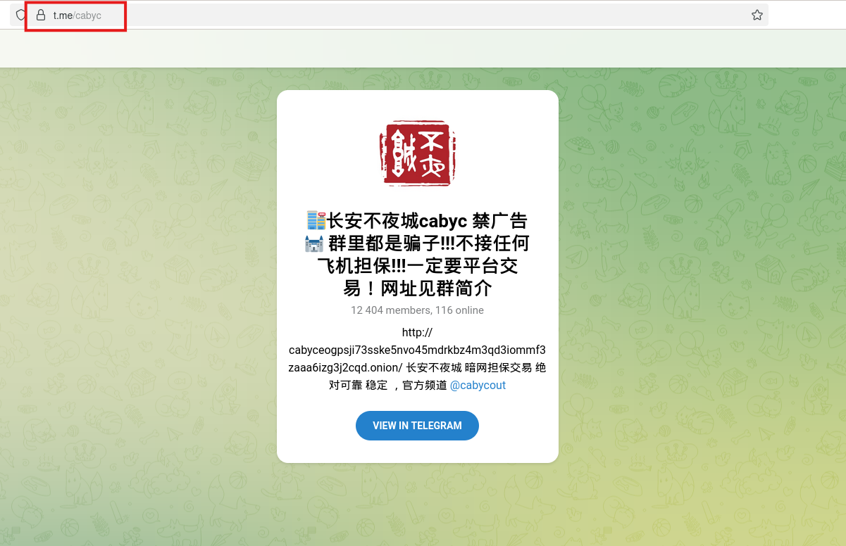 Les communautés clandestines chinoises utilisent souvent des canaux de communication parallèles sur des plateformes clearnet telles que Telegram afin de faciliter l’accès et les discussions en temps réel.